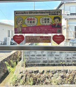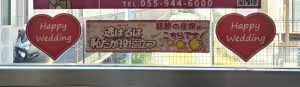 明らかに上の広告主に気を使ったサイズ感。広告と離して下側に貼ると、車窓からの景色を邪魔するから、この位置とサイズになったのだろうなあ・・・。お客さんに伊豆の景色、楽しんでもらいたいよね。両側のハートはご本人たちの御結婚後に付け足したものなのではないだろうか。ニコニコとこのシールを貼る社員さんの姿まで思い浮かびます。そして今日、この貴重な座席がある車両を子どもたちの鉄道体験のために貸し切りに・・・?夏休みの伊豆だよ?観光客、来るんだよ・・・?